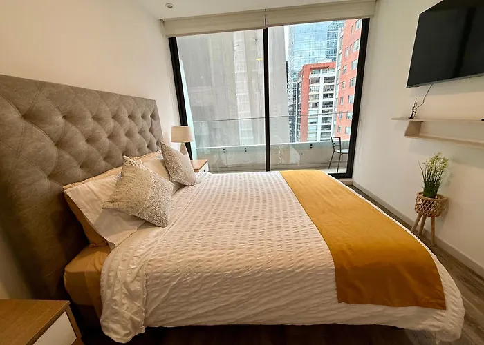 The 2-room Luxury Apartment With Balcony And View Quito provides swift access to various city landmarks, such as Bulevar Naciones Unidas, located merely 6 minutes' walk away. Situated 2.8 km from the Plaza Foch, the 64 m² apartment offers a fitness suite, a Jacuzzi, a sauna, and an indoor pool.